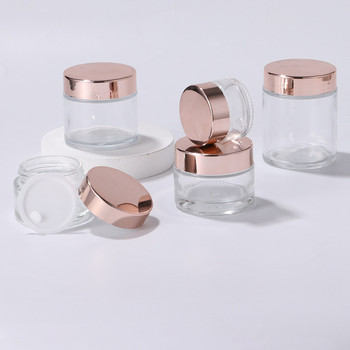 Groothandel 5G 10G 15G 20G 30G 50G 60G Cosmetische Transparante Glazen Pot Met matte Rose Gold Deksels